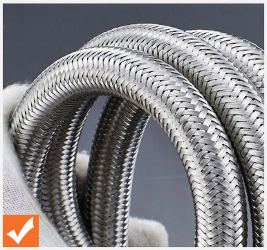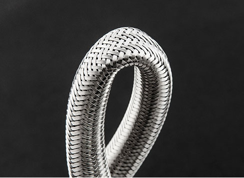 品質(zhì)上乘的金屬軟管表面編織鋼絲緊密排列 |