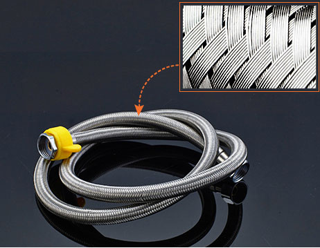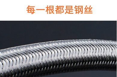 每股金屬軟管由8跟304鋼絲精密編織而成,不跳絲,抗彎曲,耐腐蝕 |