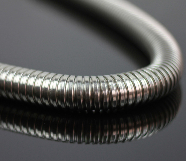 不銹鋼護(hù)線管具有重量輕、口徑一致性好,柔軟性、重復(fù)彎曲性、橈性好;耐腐蝕、耐高溫;